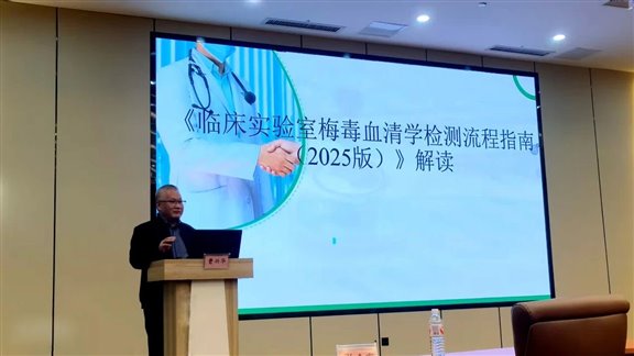 漯河市中心医院检验科主任曹兴华教授对《临床实验室梅毒血清学检测流程指南》进行了系统解读。他结合丰富的临床实践经验,强调了检测流程标准化的重要性,并对关键环节与常见问题作了细致剖析,为各实验室规范梅毒血清学检测、确保结果准确性提供了权威指导。本环节由漯河市中心医院检验科副主任蒋刚健主持。他表示,曹兴华教授的讲解使一线检测人员受益匪浅,检测流程标准化是保障检验质量的基石,只有严格遵循标准流程,才能为临床和患者提供可靠的检验结果。