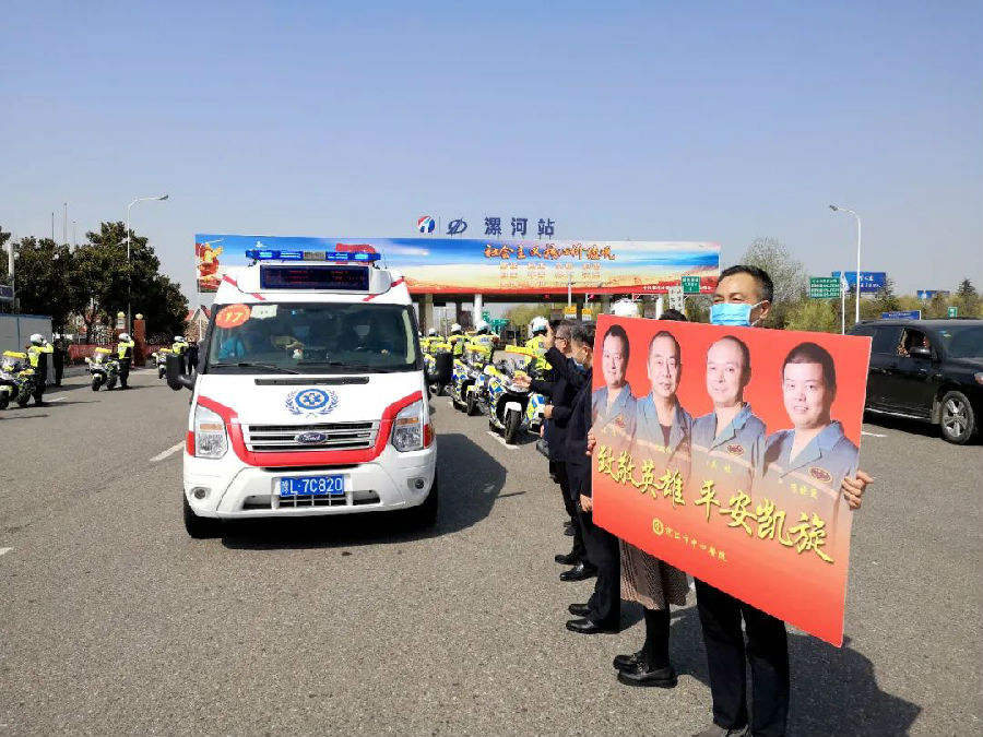 3月20日下午,漯河市中心医院(漯河市第一人民医院 漯河医专一附院)第一批4名援鄂医疗队队员和全市其他医疗机构的战友们顺利完成转运救援任务后开车返回漯河。