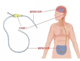 • 脑室-腹腔分流术:最常用,将一根分流管置入脑室,将多余脑脊液引流至腹腔吸收。