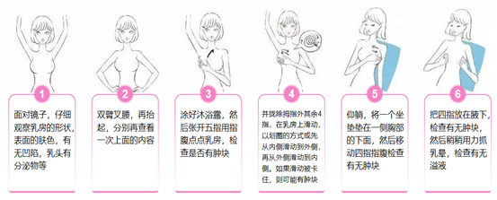 未绝经女性建议在月经结束后7–14天进行自查,每月一次;绝经女性可每月固定时间进行。