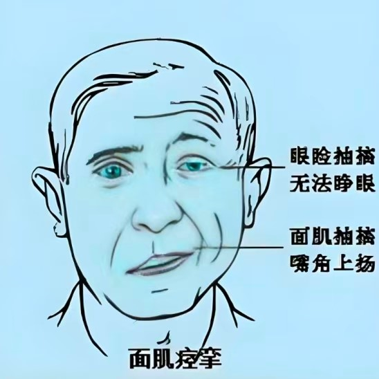 ◆ 后期:严重时,半侧面部肌肉可同时强烈收缩,导致眼睑难以睁开、口角明显歪斜,对日常生活与外观造成影响。