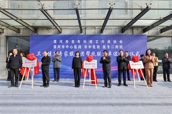 市老科协会长田冠亭,市卫健委党组书记、主任杨跃伟,市老科协常务副会长何新安分别与市中心医院党委书记张向云,市中医院党委书记、院长杨轶,漯河医专二附院院长王齐超共同为帮扶联系单位揭牌。