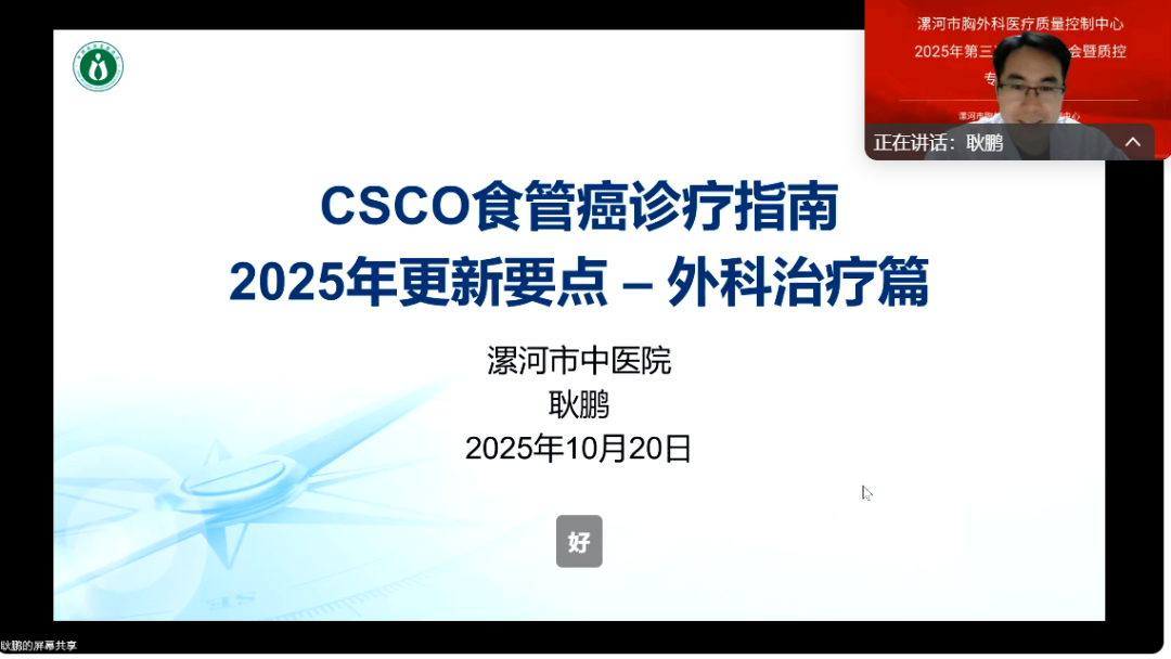 本次线上会议的顺利召开,不仅为漯河市胸外科同道提供了一个高效便捷的学术交流平台,及时传达了最新的质控要求与学术进展,更有力地促进了全市胸外科医疗质量的精细化、标准化管理,为保障患者安全、推动学科发展奠定了坚实基础。