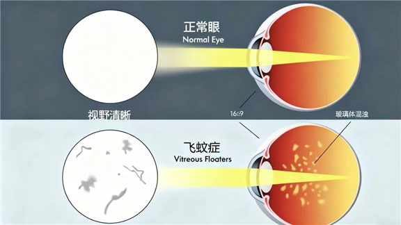 • 运动特点:黑影会随眼球转动而飘动,眼球停止转动后,黑影可能会缓慢移动或逐渐下沉,不会固定在视野某一处。