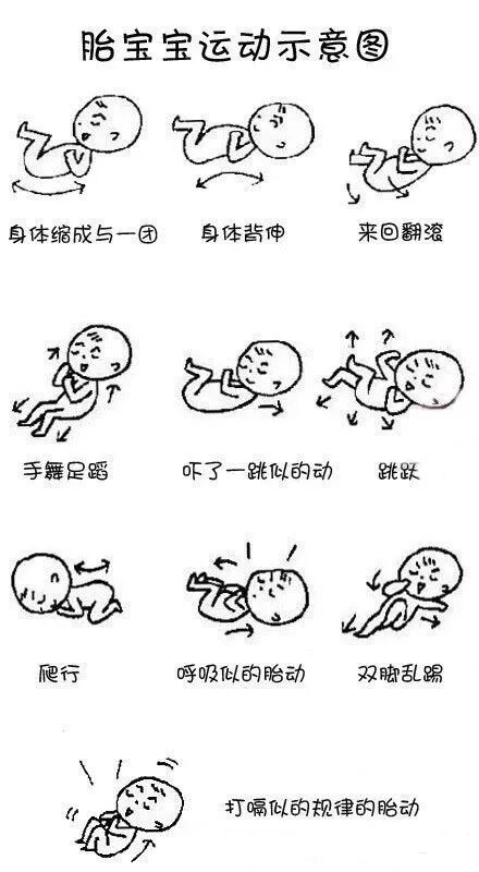 最后一种是宝宝有节律的蠕动,常常是打嗝的表现。前两种要计数在胎动之内,而第三种不计数在胎动之内。