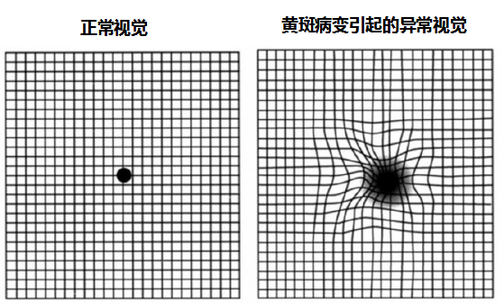 症状:视物扭曲变形(看直线变成波浪线)、中心出现固定的黑影或盲点,视力在短时间内明显下降。