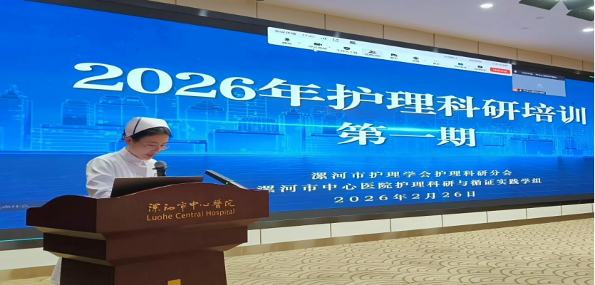 为推进护理科研工作高质量发展,提升护理人员科研素养与选题能力,夯实护理学科发展基础,漯河市护理学会护理科研分会,漯河市中心医院护理科研创新学组于2026年2月26日中午在3号楼5楼善济厅通过线上和线下方式成功举办护理科研第一期专项培训,漯河市护理科研分会委员和漯河市中心医院护理科研创新学组成员积极参与培训学习。