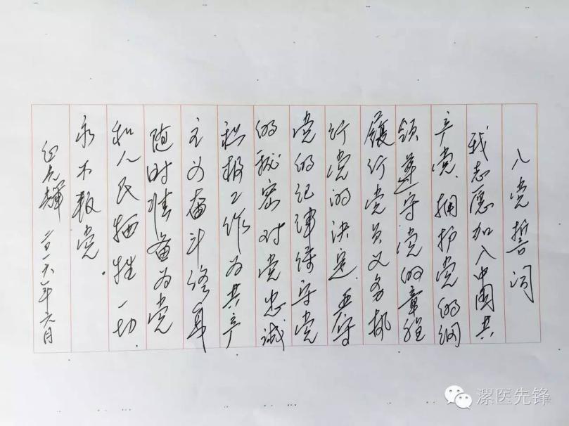 党办白光辉主任手抄的竖版誓词,很复古吧,赞!